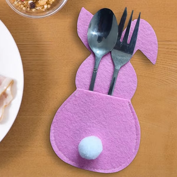 Material: Visokokakovostni filc Velikost: 15 x 8,5 cm Barve: Modra, roza, rumena in vijolična Paket vsebuje: 4 x Držala za pribor v obliki zajčka