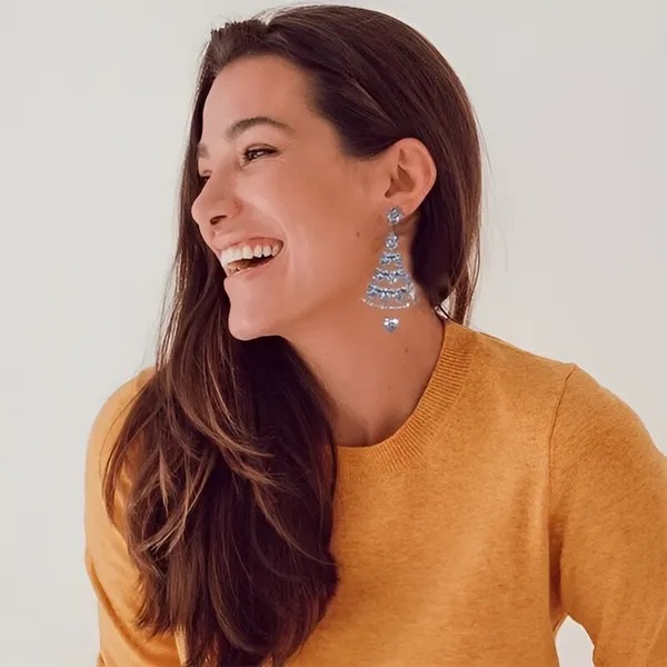 Ti uhani, izdelani iz trpežne cinkove zlitine in bleščečega kristala, ostanejo lepi skozi čas. Čez dan nosite srebrni par za čist, klasičen videz, na večernih dogodkih pa izberite večbarvne uhane, da boste izstopali.