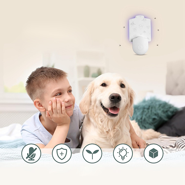 Ta čarobni električni lovilec žuželk je najboljša past, ki jo lahko uporabite v zaprtih prostorih. Njegova ultravijolična svetloba privlači leteče komarje, hrošče, molje, vinske mušice, in druge insekte, ki se nato prilepijo na lepljivo plošco. Ta nestrupen, brez vonja, ter neslišen uničevalec žuželk je popoln za domove s hišnimi ljubljenčki in otroki!