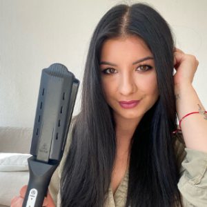 Zahvaljujoč keramični prevleki bodo tvoji lasje izjemno ravni, sijoči in mehki na dotik.