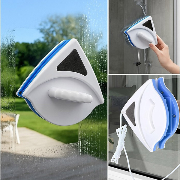 🧲 Magnetna zasnova z obeh strani: Močni magneti varno držijo čistilec na obeh straneh stekla, kar omogoča čiščenje zunanjih in notranjih površin hkrati.