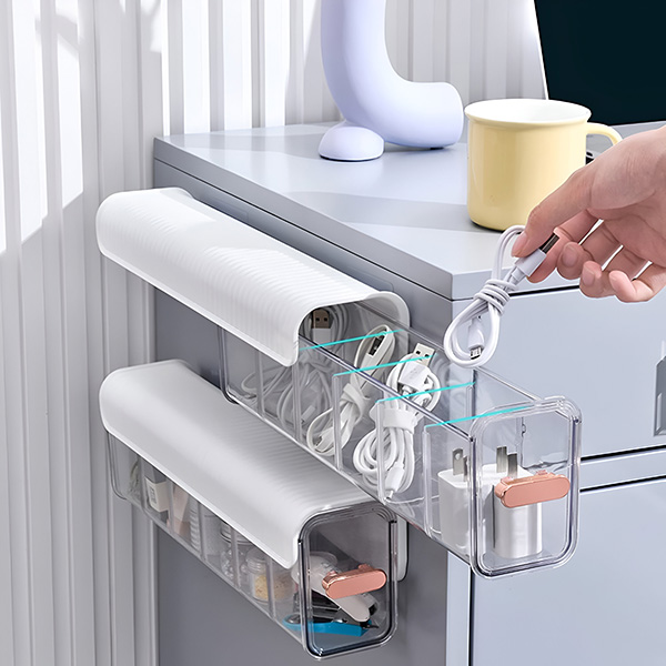 Ste naveličani izgubljanja pisal, polnilnikov ali pisarniških potrebščin? Zaradi samolepilnega nosilca ORGABIN ga lahko enostavno prilepite pod pisalne mize ali mize in tako učinkovito izkoristite prostor. Kompaktna velikost zagotavlja, da bodo vse vaše drobne potrebščine ostale urejene in jih boste enostavno našli.