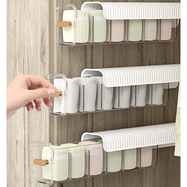 Poslovite se od neurejenih omar z organizatorji za shranjevanje ORGABIN. Jasna, prozorna zasnova vam pomaga, da vse vidite že na prvi pogled, hkrati pa ohranja nedrčke, nogavice in kravate lepo shranjene. Zaradi zasnove v obliki predala je dostop do predmetov hiter in enostaven.