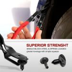 Vzmetni vzvodni mehanizem pretvori majhen gib roke v nadzorovano silo – namestite glavo, stisnite, sponka se sprosti. Klešče obdelujejo okrogle sponke v vratnih panelih in stropnih oblogah, kratko vzvodno orodje obvlada kvadratne pritrdilne elemente v odbijačih in pragovih, dolgo vzvodno orodje pa doseže globoke pritrdilne točke v armaturni plošči in oblogi blatnikov brez neudobnih kotov.