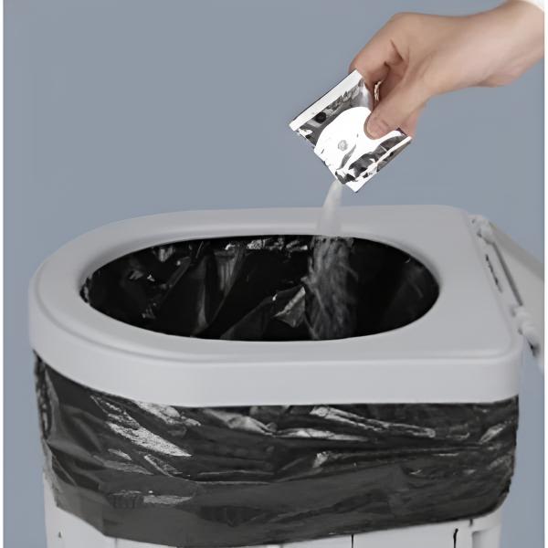 V vrečko samo dodajte prašek za nevtralizacijo neprijetnih vonjav in že lahko uporabljate stranišče kjerkoli in kadarkoli.