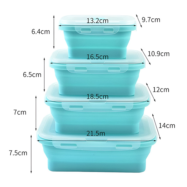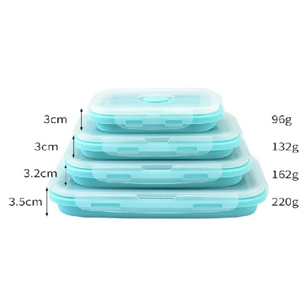 📦 Paket Vključuje: 4x Zložljive Silikonske Posode (350 ml, 500 ml, 800 ml, 1200 ml)