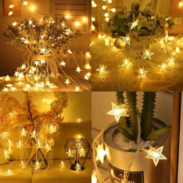 Zvezdne LED-luči lahko preprosto namestite ali obesite na stene, okna, vrata, tla, drevesa, klavirje, vrtove itd. Uporabite jih lahko za okrasitev v svoji najljubši obliki in slogu. Odlične so za dodajanje pomirjujočih barv v otroško ali najstniško spalnico ali celo v študentsko sobo. Prav tako jih lahko obesite nad verando, vrata, okno, posteljo ali nad umivalnik- ali pa jih uporabite kot stensko dekoracijo.