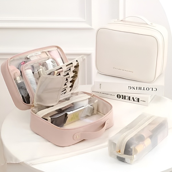 Poslovite se od neurejenosti s to elegantnim kozmetično torbico, ki poskrbi, da ima vsak predmet svoje mesto, zaradi česar bo vaša lepotna rutina potekala gladko in brez stresa.