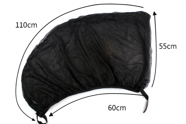 Senčniki SIDESCREEN so izdelani iz visoko raztegljive mrežaste najlonske tkanine. Za namestitev prav tako ne potrebujete priseskov ali lepila, kot kaže slika.