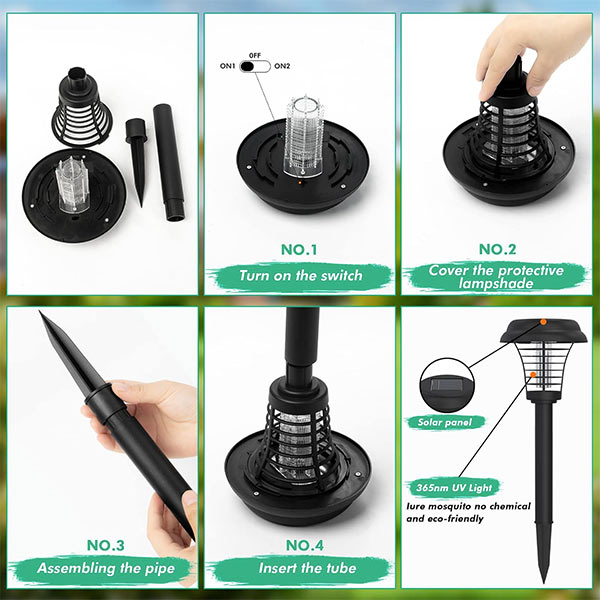 Naša solarna svetilka je preprosta za namestitev in uporabo – brez težav in brez dodatnega vira energije.                                   Uživajte v takojšnji zaščiti pred komarji!